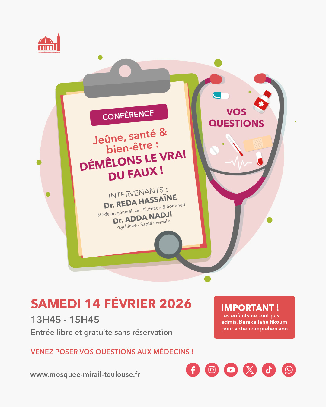 Important : Les enfants ne sont pas admis afin de permettre à chacun de profiter pleinement de la conférence. Barakallahu fikoum pour votre compréhension.